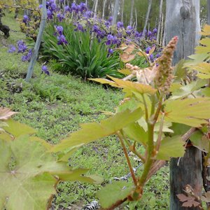 Inizia a metà Maggio il periodo più impegnativo nelle lavorazioni del vigneto. I nuovi germogli iniziano a crescere e prima di tutto si esegue la Potatura verde operazione molto importante che consiste nel selezionare i nuovi germogli, lasciandone circa da 5 a 8 per capo a frutto eliminando gran parte dei nuovi grappolini, che possono anche essere 15 o 20 per pianta, lasciandone uno per germoglio. Le piante sono molto generose, ma non sarebbero in grado di portare tutti i grappoli a completa maturazione. Le nostre vigne sono ad una elevata altitudine e per questo motivo preferiamo togliere i grappolini subito piuttosto che toglierli più avanti già formati.