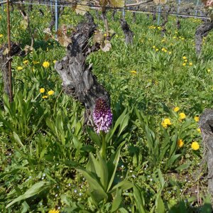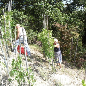 Lavoriamo tutti i giorni nei vigneti ed il nostro obbiettivo è di tutelare la nostra salute e quella delle persone che bevono i nostri vini secondo la tutela ed il rispetto dell’ambiente dal quale otteniamo il profitto che ci consente di vivere. Per questo le vigne sono coltivate riducendo al minimo possibile l'utilizzo di sostanze chimiche come fertilizzanti o pesticidi utilizzando in modo prioritario, quando sono necessari alla salute delle viti e dell'uva, zolfo, solfato di rame e letame naturale di bovino per le fertilizzazioni. Le vigne sono lasciate inerbite e sono popolate da numerosi tipi di erbe spontanee che nelle stagioni primaverili offrono anche alcuni fiori, tipo il tarassaco, il geranio e la salvia selvatica, ma in alcune vigne nuove dove non c'è ancora una vegetazione spontanea ben radicata abbiamo provato ad inserire varietà utili agli insetti pronubi, tipo le api, inserendo varietà a loro gradite, come facelia, meliloto, grano saraceno, lupinella o lino.
