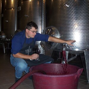 Finita la fermentazione alcolica il mosto viene separato dalle vinacce, ed i vini nuovi vengono mantenuti separati vigna per vigna e molto frequentemente vengono travasati (circa 6 -8 travasi dai primi girni di ottobre fino al periodo di Natale), operazione fondamentale per mantenere i vini puliti dal punto di vista olfattivo.
