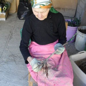 Dove non si può mettere il letame per la troppa pendenza dei vigneti utilizziamo dell'humus di letame bovino che interriamo a mano.
